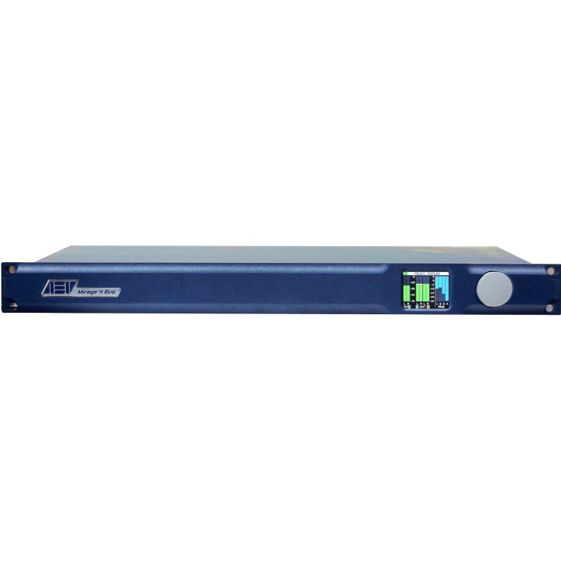 Mirage 4 Evo, digital audio processor, DSP powered, a complete solution for a modern Radio Broadcast, with all full basical features that the broadcaster need. In addition to the basic functions, we have included some functions that make this product unique and highly performing in the cost range proposed by AEV, with a very competitive price and a hight ratio quality/ price, always in the AEV philosophy: high performance but with low costs strong advanced standard features: